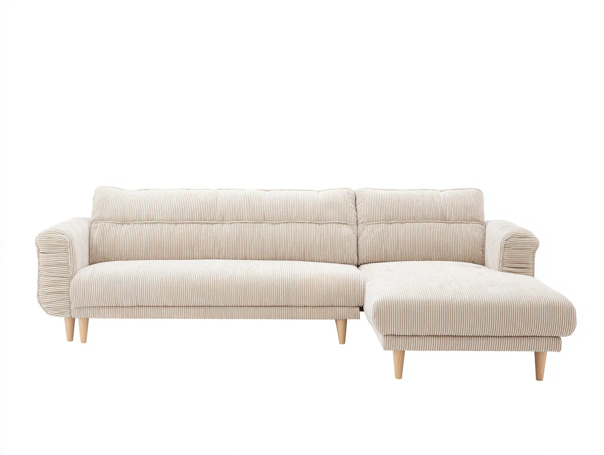 Divano angolare - tessuto a coste - 285x168x78 cm - beige - design moderno