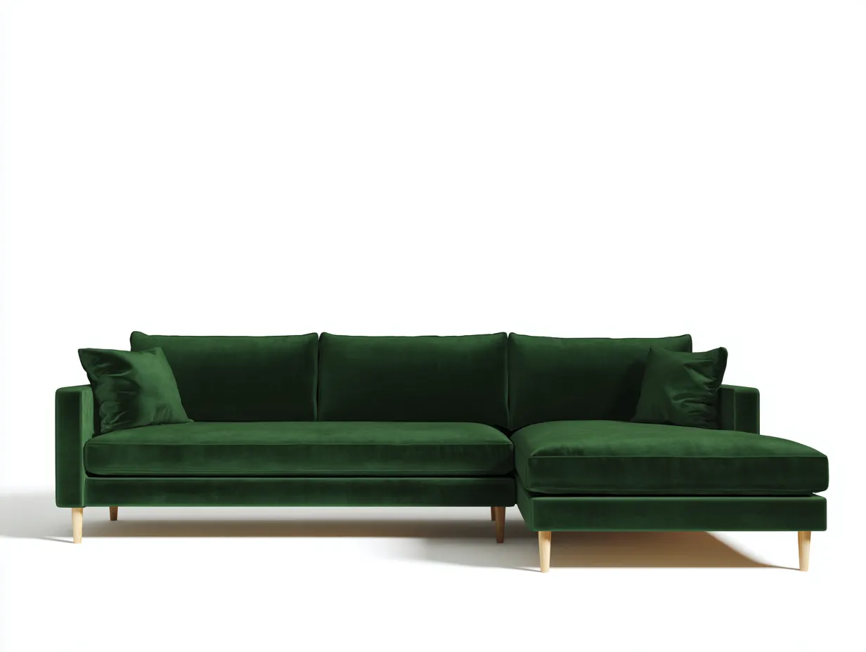 Divano angolare - tessuto velluto - 292x168x76 cm - verde - design moderno