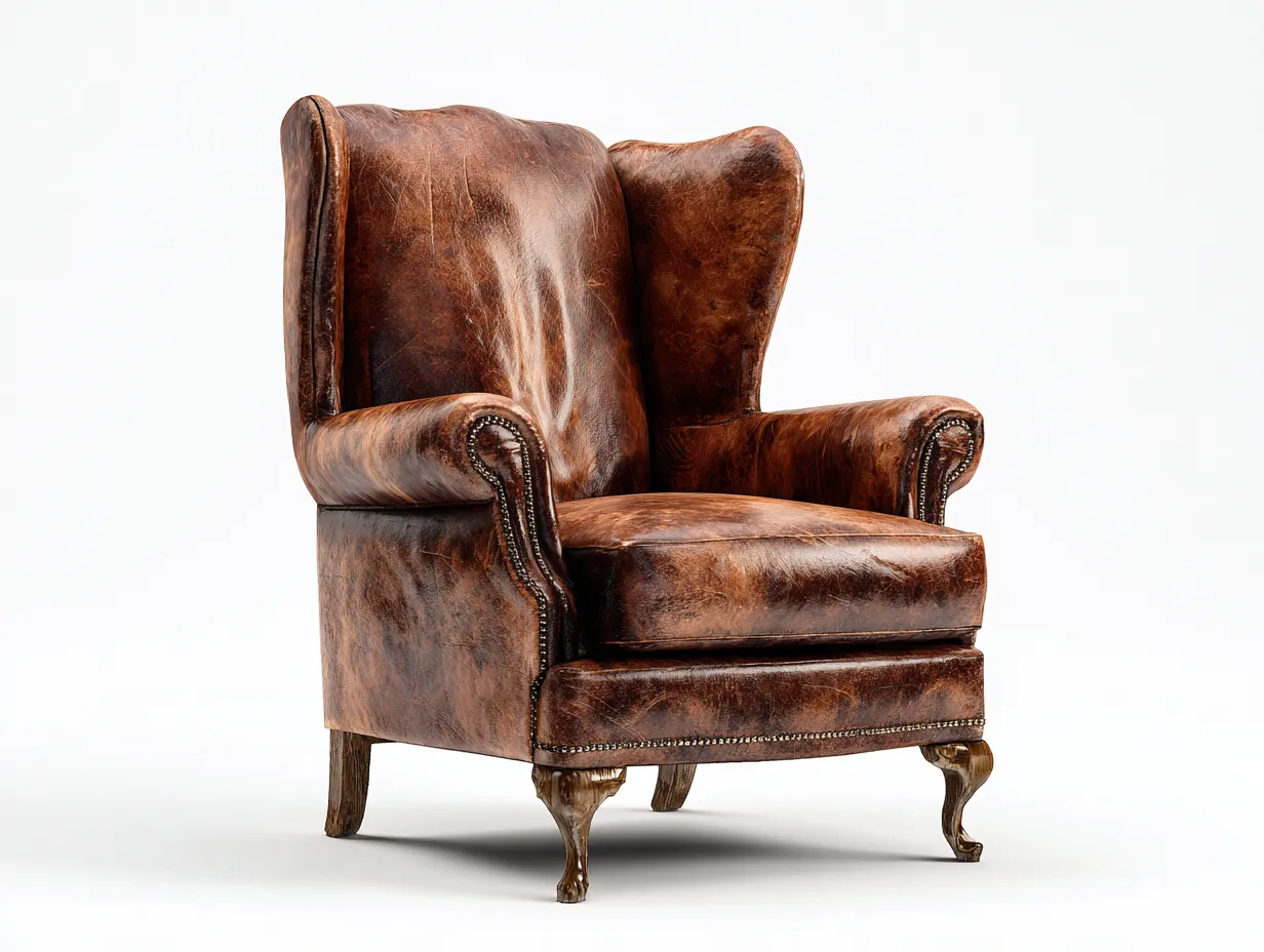 Poltrona a orecchioni - pelle - 86x90x104 cm - marrone - stile classico